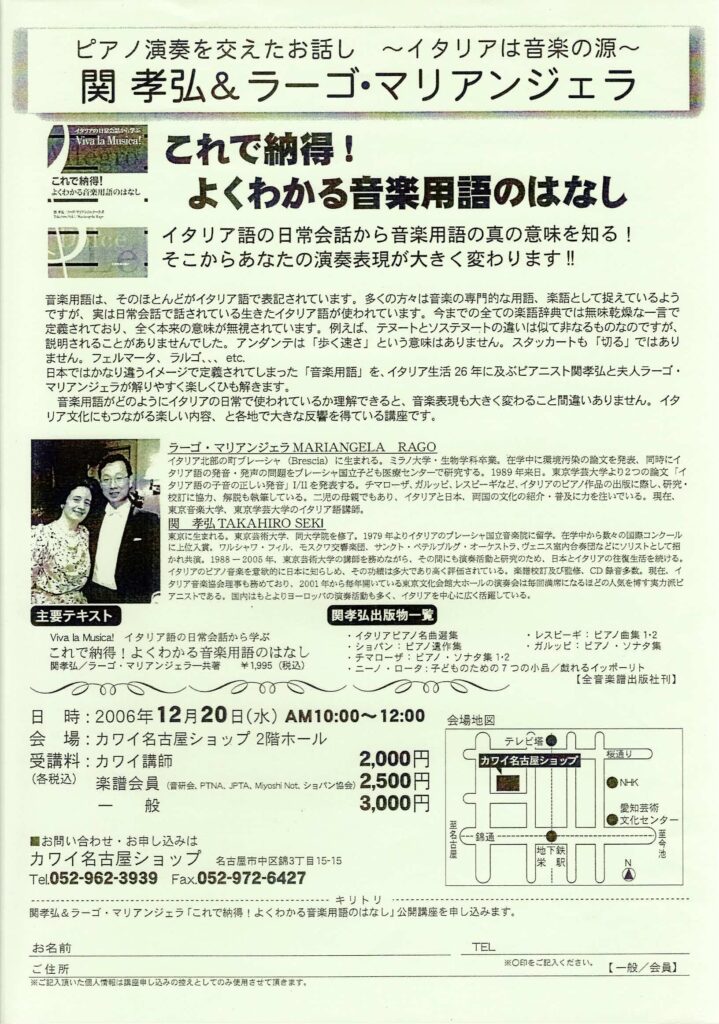 2006年12月20日 :カワイ名古屋ショップ 2階ホール
