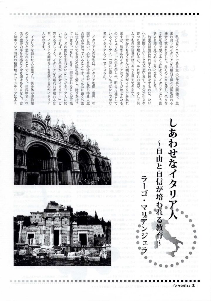 しあわせなイタリア人 2026 3/23 『芸術の宝の都イタリアの教育』~本物に触れることこそ教育・イタリアの子育て〜 芸術の宝の都イタリアの教育 関連記事 記事 2026年3月24日 100%幸せですか?明るく生きる天才イタリア人の秘密 2026年3月24日 記事 2026年3月24日 記事 2026年3月24日 記事 2026年3月24日 記事 2026年3月24日 記事 2026年3月24日 マリアンジェラさんのイタリア流しあわせ術 2026年3月24日