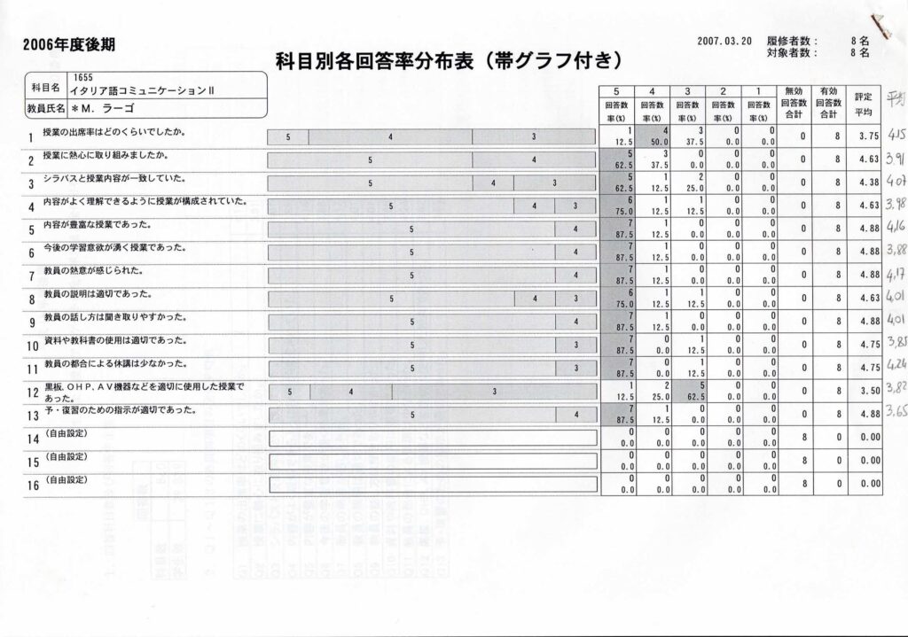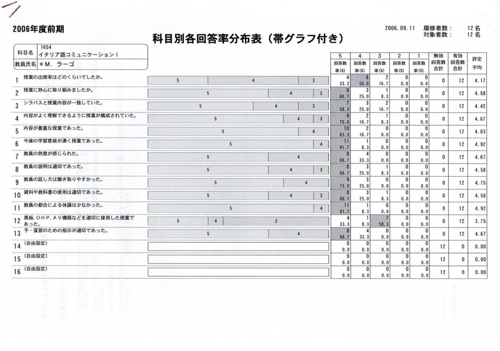東京学芸大学 2006年度前期学生による授業アンケート調査 2026 3/23 Ensemble 東京学芸大学 2005年度前期学生による授業アンケート調査 関連記事 記事 2026年3月24日 記事 2026年3月24日 マリアンジェラさんのイタリア流しあわせ術 2026年3月24日 記事 2026年3月24日 記事 2026年3月24日 バザール 2026年3月24日 幸せになるヒント満載のイタリア流幸せ術 2026年3月24日 夫妻で綴る、幸せになるヒント満載の・タリアポ幸せ術 2026年3月24日