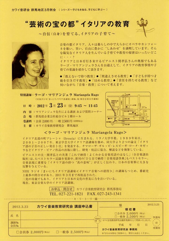 芸術の宝の都”イタリアの教育 2026 3/23 2012年3月23日 群馬県企業公社総合ビル 収録 関連記事 収録 2026年3月23日 芸術の宝の都”イタリアの教育 2026年3月23日 芸術の宝の都”イタリアの教育 2026年3月23日 Ensemble 2026年3月23日 Interview 2026年3月23日 サロンコンサート公開収録 2026年3月23日 NHKラジオまいにちイタリア語 2026年3月23日 これで納得!イタリア音楽用語の話 2026年3月23日