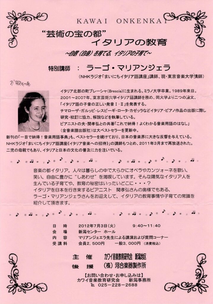 芸術の宝の都”イタリアの教育 2026 3/24 2012年7月3日 新潟センターホール 芸術の宝の都”イタリアの教育 芸術の宝の都”イタリアの教育 関連記事 記事 Giornale di Brescia 2003年8月31日 2026年3月24日 2011年度後期授業アンケート結果集計表在 2026年3月24日 サラサーテ 2026年3月24日 ひと目で納得!音楽用語事典 2026年3月24日 ソラのいえ 2026年3月24日 芸術の宝の都”イタリアの教育 2026年3月24日 芸術の宝の都”イタリアの教育 2026年3月24日 芸術の宝の都”イタリアの教育 2026年3月24日