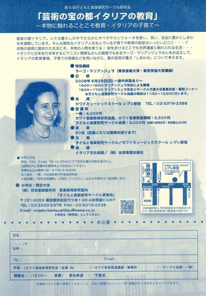 芸術の宝の都イタリアの教育 2026 3/23 2008年6月29日 カワイミュージックスクール レプレ新宿 しあわせなイタリア人 Ensemble 関連記事 記事 2026年3月24日 記事 2026年3月24日 記事 2026年3月24日 記事 2026年3月24日 マリアンジェラさんのイタリア流しあわせ術 2026年3月24日 記事 2026年3月24日 記事 2026年3月24日 バザール 2026年3月24日