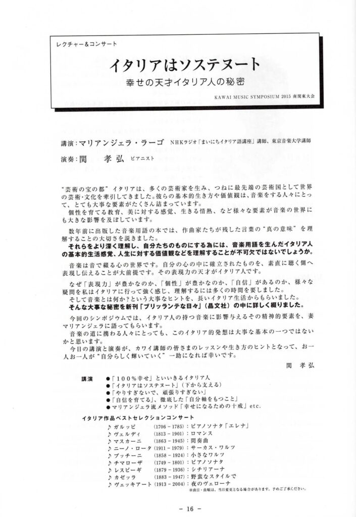 52nd Symposium 南関東大会 2026 3/24 平成27年9月29日ー30日 カワイ音楽教育シンポジウム カワイ音楽教育シンポジウム東北大会 関連記事 Cerimonia di consegna della cittadinanza onoraria 2026年3月24日 イタリアの芸術・文化・教育 2026年3月24日 東京音楽大学 2026年3月24日 2015 Kawai Music Symposium 2026年3月24日 カワイ音楽教育シンポジウム東北大会 2026年3月24日 カワイ音楽教育シンポジウム 2026年3月24日 2026年3月24日 52nd Symposium 関東大会 2026年3月24日